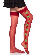 Add a touch of romance with these Bordeaux Sheer Thigh Highs with Embroidered Rose Side Details. Made from a luxurious spandex-blend fiber, they offer a soft, stretchy fit with a hint of shine. The red and green embroidered roses along the side add a flirty, feminine touch, making these thigh highs the perfect finishing detail for any bold and playful look.