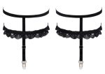 Svart, dubbelt strumpeband från Cottelli Accessoires med avtagbara strumphållare. Av mjuk sammet med silverfärgade ringar och fin spets. Mjukt och elastiskt så att det sitter perfekt. Strumphållarna kan justeras i längd. 1 par.