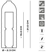 Total length 21 cm, insertion depth 15 cm, opening Ø 2.3 cm (flexible).