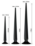 Stora pluggens totala längd: 49 cm, införingdjup: 46 cm, Ø 1,5 cm – 4,8 cm, 453 gram.