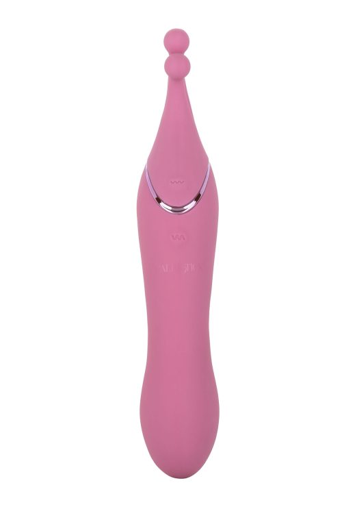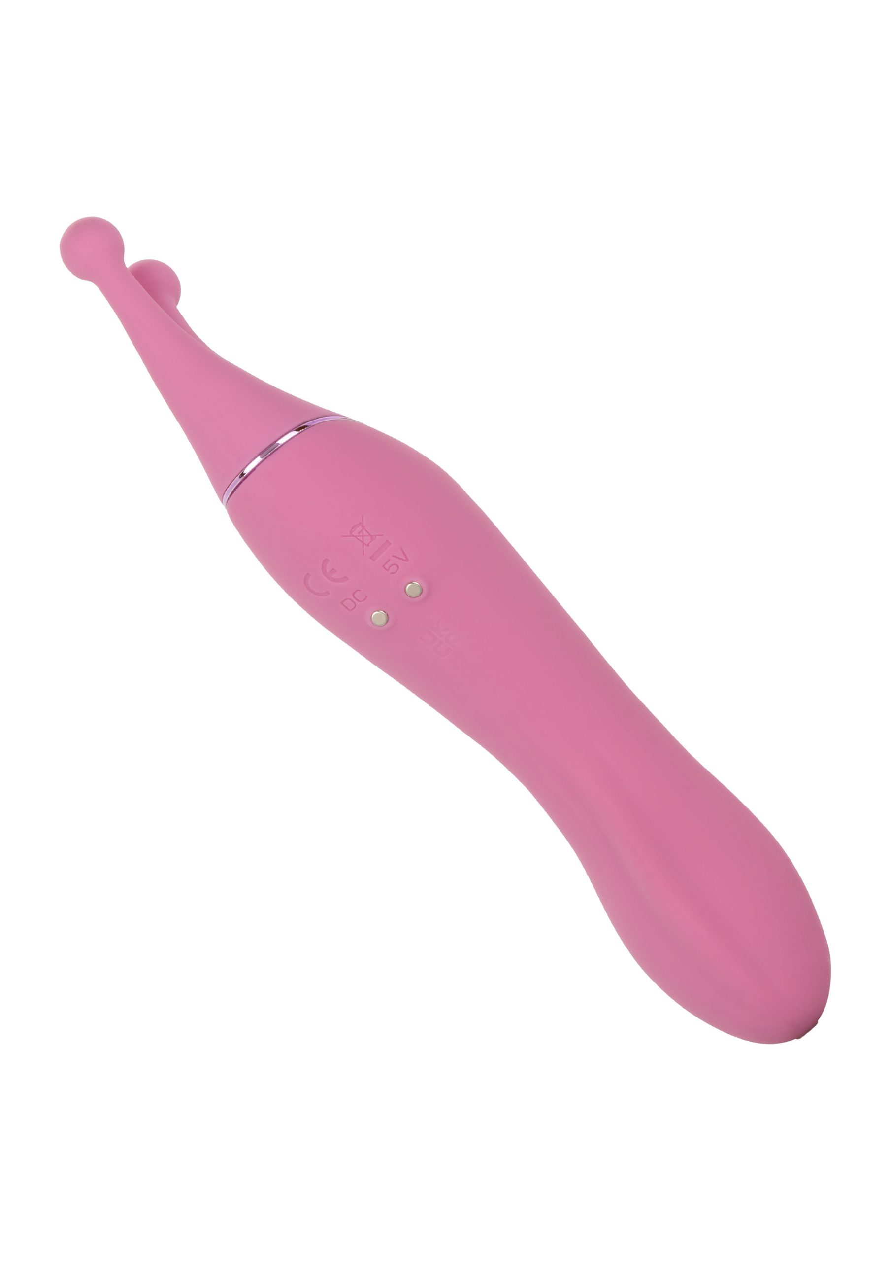 Tempt and Tease Kiss är en dubbelsidig massageapparat som vet exakt vad du är sugen på. Känn värmen stiga med den dubbeländade massageapparaten med två distinkta ändar, två kraftfulla motorer och 7 oberoende styrda vibrationsfunktioner. Med en mångsidig form och två kraftfulla vibrationsmotorer i varje ände kommer du att nå nya klimathöjder på nolltid. Kittla och reta externt med de flimrande teasers med mjuk pärlspets, eller dyk djupt in i mullrande inre stimulering med den böjda G-sidan. Välj din nöjesstil med två oberoende styrda motorer i varje ände av denna dubbelsidiga massageapparat och du kommer aldrig att tröttna på denna sexiga stimulator.