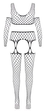 The black 3-piece lingerie set from Fantasy by Cottelli contains a short top, suspender tights and a pair of sleeves. Everything is made out of large net. The outfit is seamless, very stretchy and wonderfully soft – for maximum comfort when worn. The suspender tights are seductively crotchless as well. With a reinforced toe part.