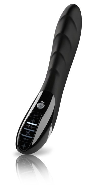 Strukturerad vibrator som skämmer bort med dubbel vibration och ström – utan någon extra apparat eller kabel. Med åtta vibrationsprogram och fem olika strömvarianter plus ett träningsprogram för hennes kärleks- och bäckenbottenmuskulator. 27 cm lång, Ø 3,2 till 4 cm. Laddas upp – USB-kabel medföljer. Material: silikon, ABS.
